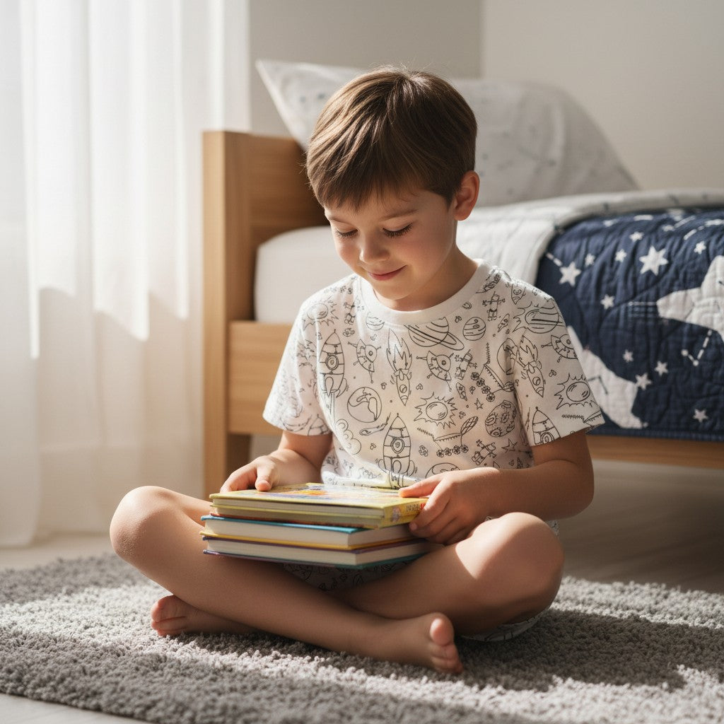 Giv barnet en pyjamas, der er lige så unik som deres fantasi—klar til at farvelægge universet, én raket ad gangen.